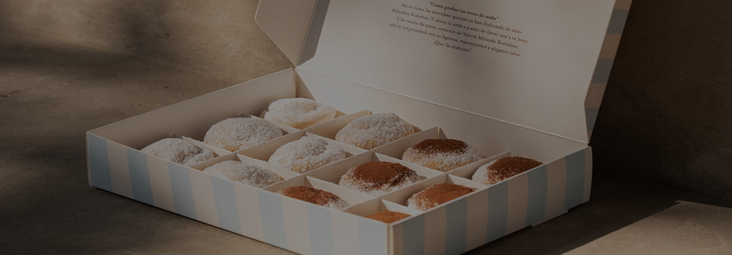 Somos una bizcochería de autor reconocida por sus “Nubettas”: Delicadas y livianas bizcochas de distintos rellenos y toppings, que sorprenden por su esponjosidad y elegante sabor.